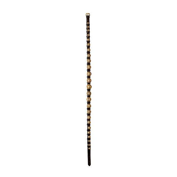 - Black leather strap with 25 solid brass #120 bells and a solid brass buckle
