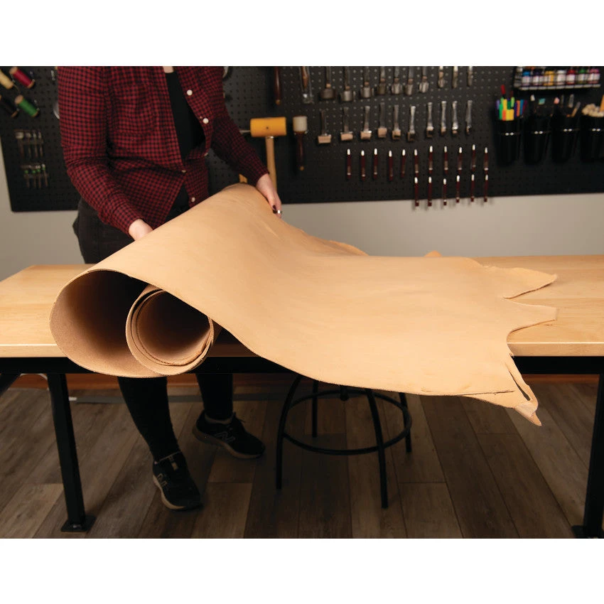 Showcase your artistry with this veg tanned leather from our friends at Chahin. Its subtle open grain helps you achieve greater depth in your tooling, stamping and carving, enhancing your work for details that pop. With a beautiful natural color, you can choose to leave it as is or customize the finish by adding dye and oil. Youll also find this leather molds beautifully, making it a popular choice for holsters.