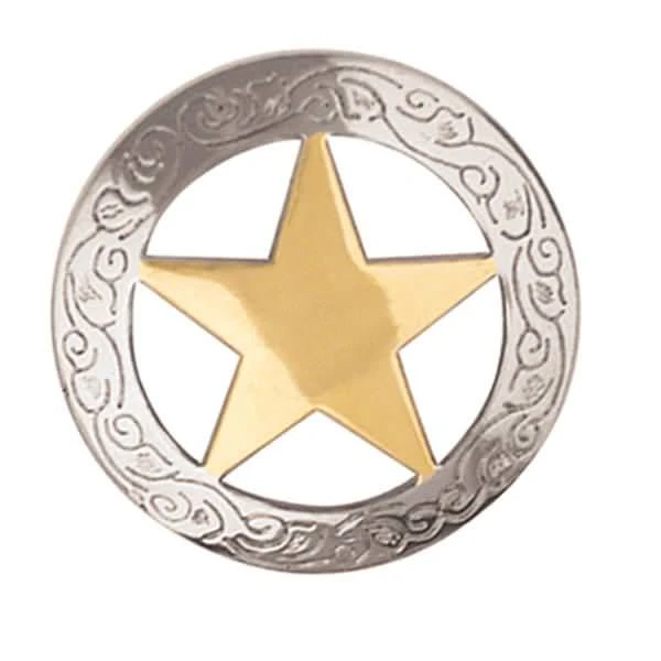 - For a look as big as the lone star state itself, this nickel plated concho with 18k gold plated star delivers